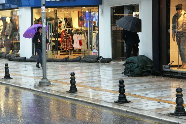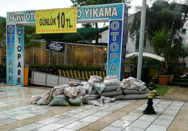 Sağanak yağışın olacağını duyan Bodrum esnafı ise işletmelerinin önlerine kum torbaları yığarak önlem almaya çalıştı. Birçok iş yeri ve otopark oluşabilecek sel baskınlarına önlem olması için kum torbalarından barikat kurdu.