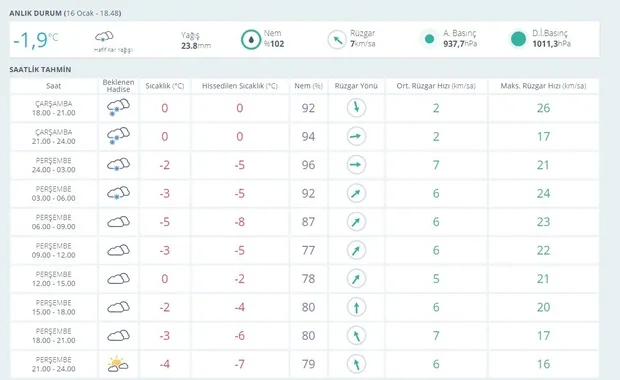 Tokat'ta kar yağışının Perşembe gecesi geç saatlere kadar süreceği tahmin ediliyor. Meteorolojinin yayınladığı verilere göre Tokat'ta kar yağışı Perşembe günü de devam ediyor. Perşembe günü sıcaklık değerleri eksi 5 dereceye kadar düşmesi bekleniyor. Okulların kapanacağı gün olan 18 Ocak'ta hava açık, bulutlu ve güneşli. Hafta sonu hava açık olurken, sıcaklık değerleri eksi 11 dereceye kadar düşmesi tahmin ediliyor.