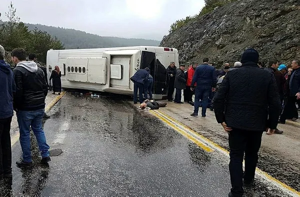 Bursa'da bir otobüsün devrilmesi sonucu çok sayıda kişi yaralandı.