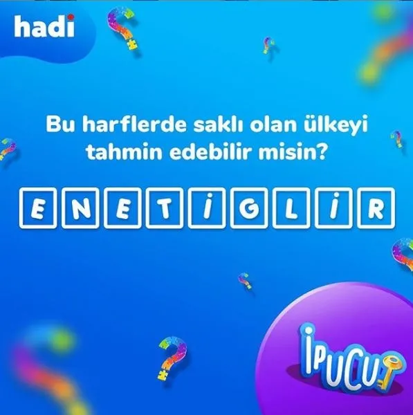 Canlı bilgi yarışması hadi 20.30 yarışması için yayınladığı ipucu sorusunda şu ifadeleri kullandı: