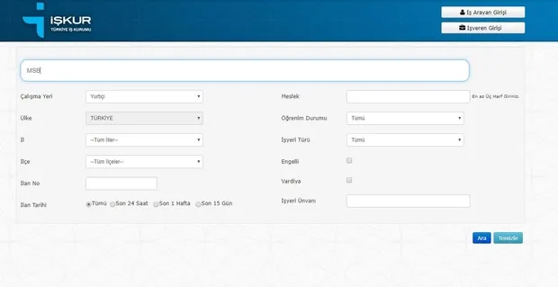 İŞKUR MSB 600 İŞÇİ ALIMI BAŞVURU EKRANI İÇİN TIKLAYINIZ!