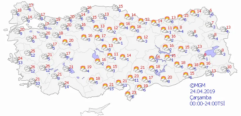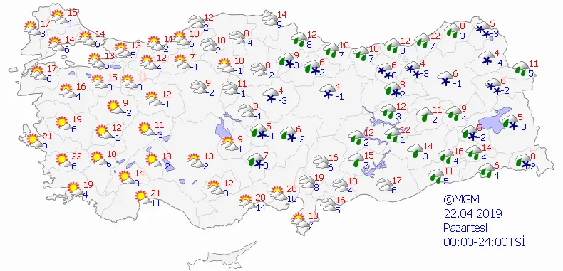 Meteoroloji Genel Müdürlüğü tarafından yapılan son değerlendirmelere göre; Ülkemiz genelinin parçalı ve çok bulutlu, Kıyı Ege ile Antalya ve Konya dışında tüm bölgelerin yağışlı geçeceği tahmin ediliyor.
