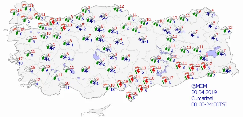 Meteoroloji'den hafta sonu plan yapacak vatandaşlar için son dakika uyarısı! Meteoroloji Genel Müdürlüğü bugün (20 Nisan 2019 - Cumartesi) için yayınladığı hava tahmin raporlarında hava sıcaklıklarında yurt genelinde hissedilir düşüyor. Dün sabah saatlerinden itibaren artan yağışlar kar, sağanak ve yer yer dolu yağışı olarak etkisini göstermişti. Hafta sonu için de vatandaşlar hava durumu ile ilgili araştırma yapıyorlar. "Bugün hava nasıl olacak?" sorusunun yanıtı merak konusu oldu. Peki, bugün hava durumu ile ilgili son dakika tahminleri ve 5 günlük hava tahmin raporunun detayları haberimizde...