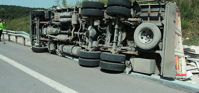 Kaza Kuzey Marmara Otoyolu Uskumruköy mevkiinde saat 10.00 sıralarında meydana geldi. Yavuzsultan Selim Köprüsü Edirne istikametinde seyreden 34 NA 2561 plakalı kamyon sürücüsü Osman Yıldız, Uskumruköy katılımından Kuzey Marmara Otoyoluna bağlanan Yenal Akçay'ın kullandığı 34 LZ 0233 plakalı mermer yüklü kamyona arkadan çarptı. Çarpmanın etkisiyle mermer yüklü kamyon, bariyerlere çarparak devrildi. Kazada Yenal Akçay yaralanırken, kamyondaki mermerler ise yol kenarına savruldu. Haber verilmesi üzerine kaza yerine sağlık, Jandarma ve İtfaiye ekipleri sevk edildi. Yaralı Akçay ambulansla hastaneye kaldırıldı. Kaza yapan kamyon ise vinç yardımıyla devrildiği yerden kurtarıldı.