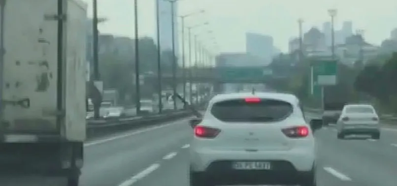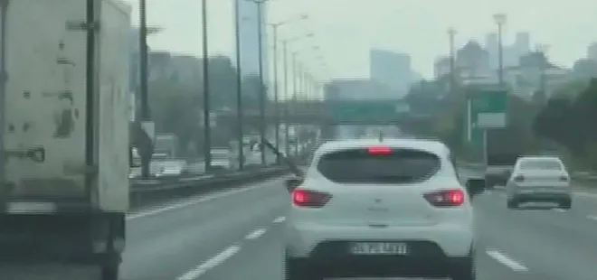 TEM Otoyolu'nda, otomobilinin camından çıkardığı baltayla yanında seyreden kamyon sürücüsünü tehdit ettiği görüntüler sosyal medyada yayınlanan zanlı yakalandı.