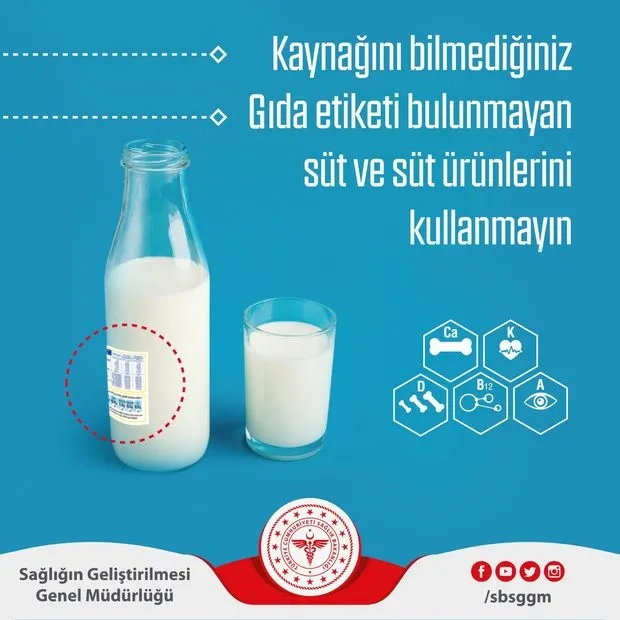 Sağlık Bakanlığı Sağlığın Geliştirilmesi Genel Müdürlüğü, “Kaynağını bilmediğiniz, gıda etiketi bulunmayan süt ve süt ürünlerini kullanmayın” uyarısında bulundu.