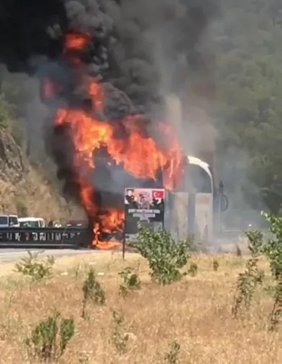 Her hangi bir yaralanma veya can kaybının yaşanmadığı yangında, otobüs kullanılamaz hale geldi, bagaj kısmındaki yolcu valizleri küle döndü.