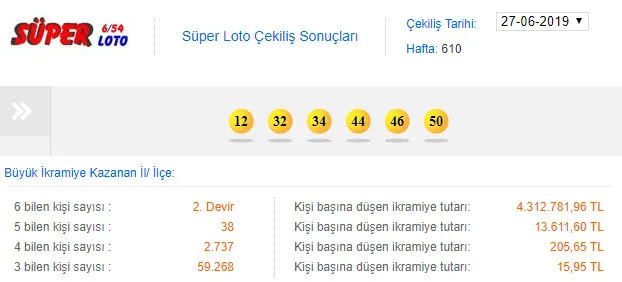 SÜPER LOTO 27 HAZİRAN ÇEKİLİŞ SONUÇLARI