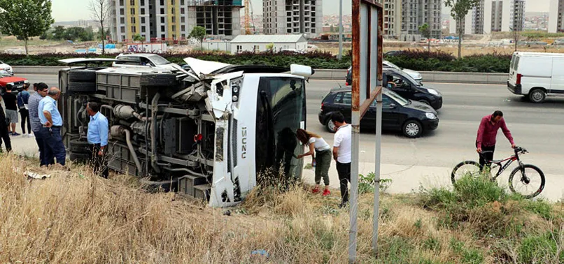 Başkent Ankara'da işçileri taşıyan servis minibüsü devrildi. Etimesgut'un Ayaş yolu üzerinde gerçekleşen kazada 2'si ağır 14 kişinin yaralandığı açıklandı.