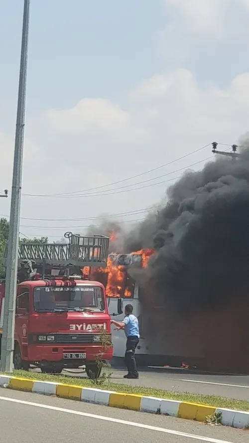 Öte yandan, otobüsteki yangın, Balıkesir Büyükşehir Belediyesi İtfaiye ekiplerinin yaklaşık yarım saatlik çalışmayla söndürüldü. Söndürme çalışması sebebiyle trafik kontrollü olarak veriliyor.