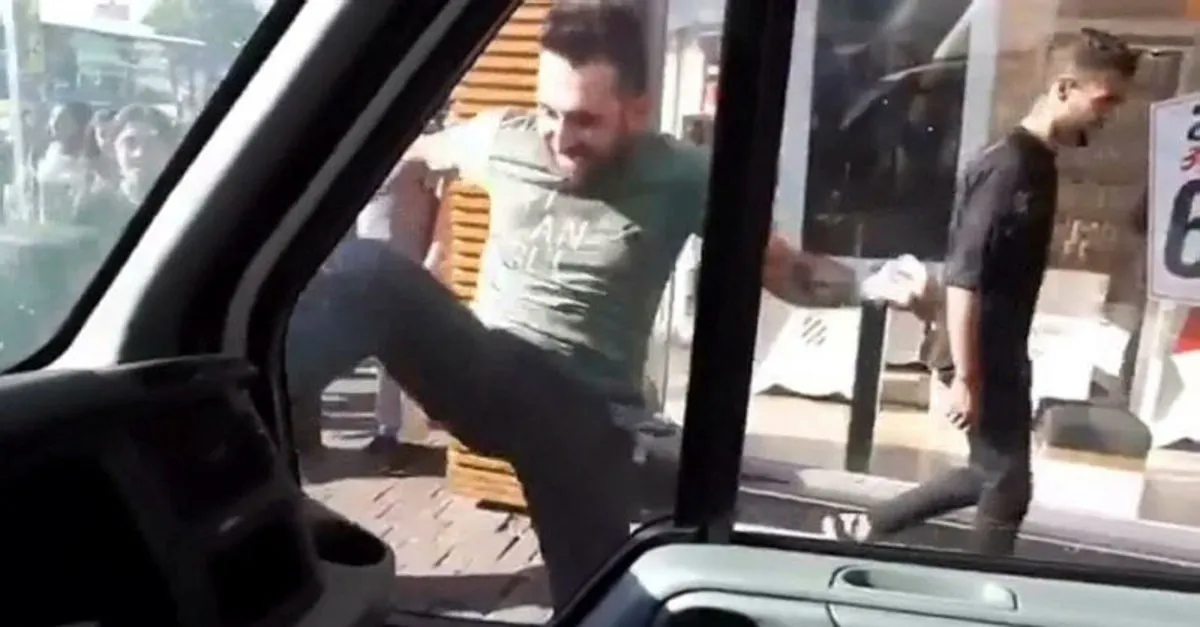 Kadıköy'de minibüsçü terörü! Yolu kapatan kamyonete tekmelerle saldırdı