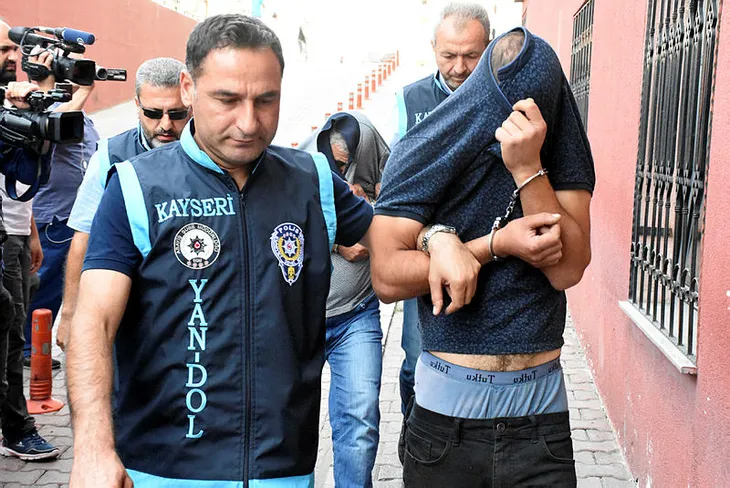 Gözaltına alınan 5 kişi, emniyetteki işlemlerinin ardından Kayseri Devlet Hastanesi'nde bulunan adli tabiplikte geçirildikleri sağlık kontrolünün ardından 'Resmi belgede sahtecilik', 'Nitelikli dolandırıcılık', ve 'Nitelikli yağma' suçlarından adliyeye sevk edildi. Bu sırada şüphelilerde biri, gazetecinin 'İnsanları neden dolandırdınız' sorusuna 'Tefecilikten dolayı' cevabını verdi.