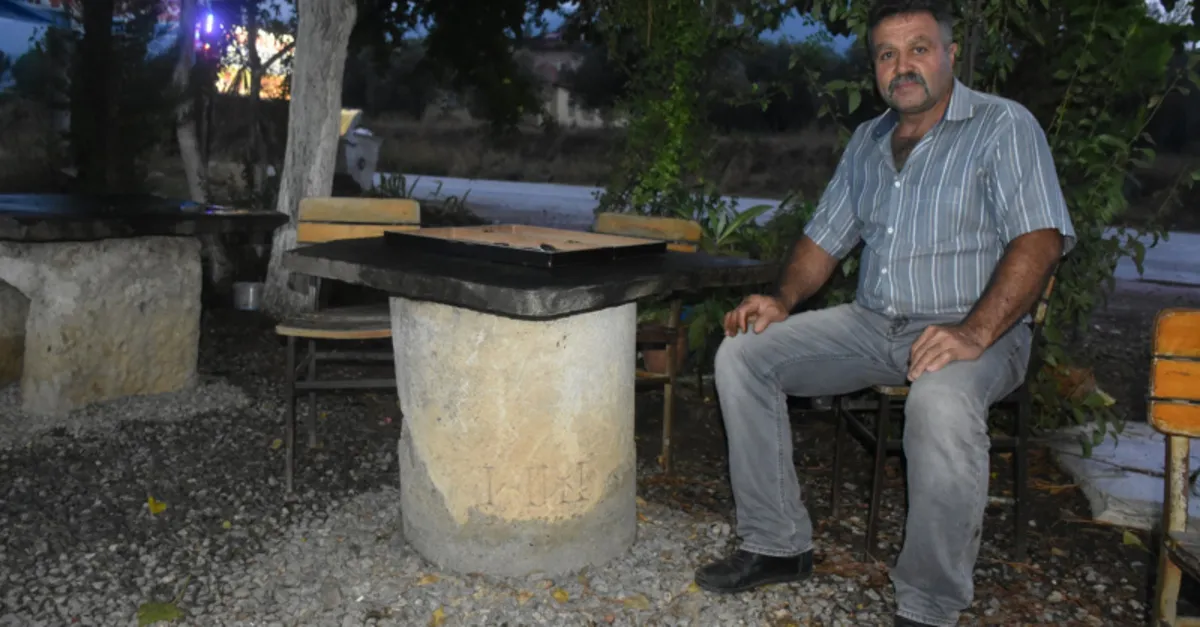 Maden işiyle de uğraşan Zeynel Şenler, 35 yıl önce açtığı kahvehaneye dekor amacıyla koyduğu mermer taşın üzerine, üretim yaptığı kayrak taşını yerleştirdi. Bir masa haline gelen tarihi taşın tarihsel işlevinden habersiz olan işletme sahibi ve müşteriler yıllarca bu taşın üzerinde tavla, okey gibi oyunlar oynayıp çay-kahve içti.