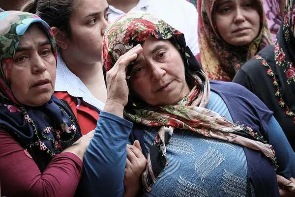 Cenaze töreninde baba Mehmet ve anne Ummuhan Sarıcan, güçlükle ayakta durabildi.