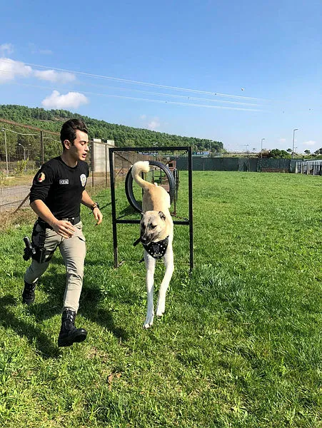 İstanbul Emniyet Müdürlüğü bünyesinde görev alan kangal ve akbaş cinsi köpeklerin zorlu eğitimi görüntülendi. İtaat, ileri itaat saldırı ve öz güven parkuru olmak üzere 4 aşamada verilen eğitimi başarı ile tamamlayan köpekler, havalimanlarında, gösterilerde, mitinglerde ve maçlarda aktif olarak görev alıyor.