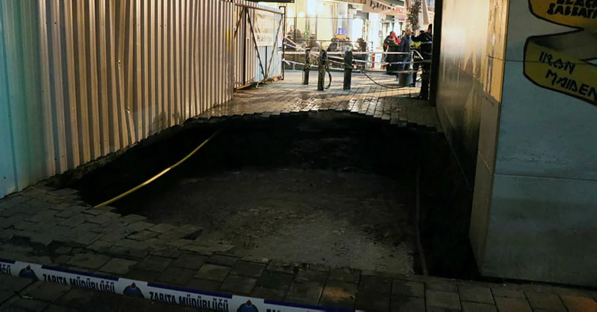İzmir’in Konak ilçesinde altında su birikintisi oluşan yolda çökme meydana geldi. Mekanların bulunduğu noktada meydana gelen çökmede masalarda oturan 3 müşteri çökme sonucu çukura düştü.