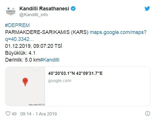 Kars'ta 4 büyüklüğünde korkutan deprem! 2019 AFAD-Kandilli son depremler...