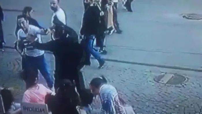 Yanındaki kadını döven kişiye dayak kamerada