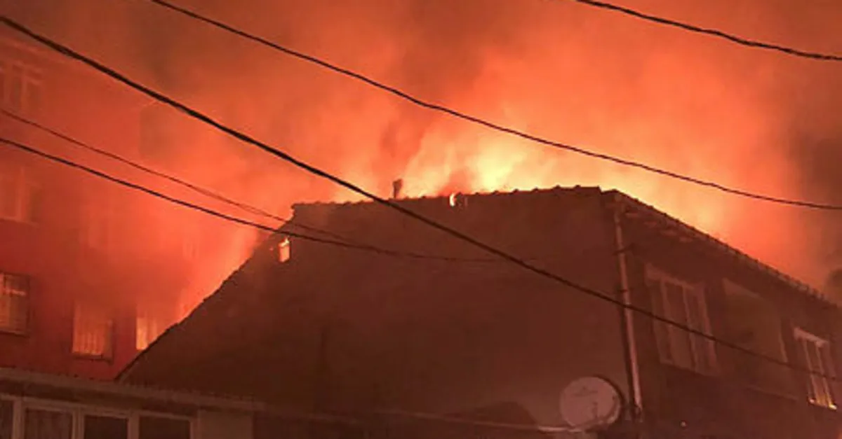 Eyüpsultan'da 2 katlı bir binanın çatısında yangın çıktı. Alevler kısa sürede tüm çatıyı sararken, 2. kattaki Suriyeli anne ile 6 çocuğunu komşular uyandırarak dışarı çıkarttı.