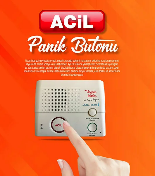 İlçede yaşlı, engelli ve yatağa bağımlı vatandaşların, yeni tip koronavirüs (Kovid-19) şüphesi ve acil durumda basabileceği panik butonu devreye girdi. Vatandaşlarımız herhangi bir durumda evlerine kurulan sistem sayesinde çağrı merkezine ve sisteme entegre edilmiş sağlık ekibine ulaşacak. Eve doktor ve acil tıp teknisyeninin bulunduğu ambulans yönlendirilecek. Vatandaşların kişisel ihtiyaçları da çağrı merkezi tarafından dışarıdaki belediye ekiplerine iletilerek giderilecek"
