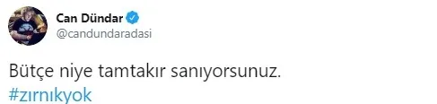Almanya'ya kaçarak ABD bayrağı motifli battaniye ile yatan Can Dündar, başlatılan 'Milli Dayanışma Kampanyası' sonrasında "Bütçe niye tamtakır sanıyorsunuz. #zırnıkyok" paylaşımında bulundu.