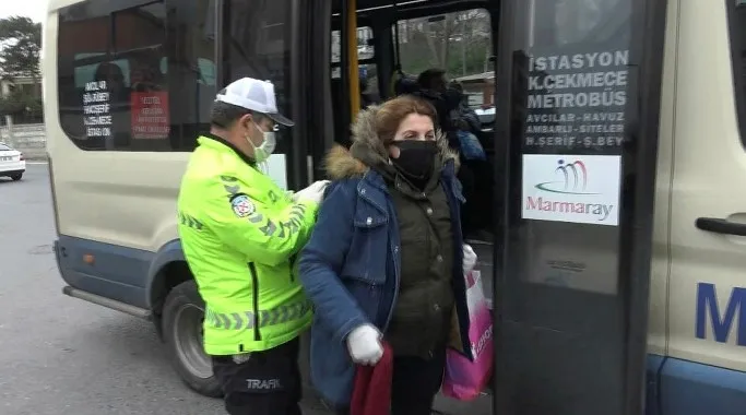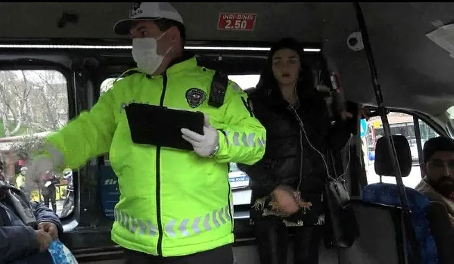 Ambarlı yönüne gelen minibüslerin genellikle boş olduğu görülürken, Küçükçekmece yönüne giden Münir Elçiçek yönetimindeki 34 M 5344 plakalı minibüs durdurulunca bazı koltukların boş olmasına rağmen bazı yolcuların ayakta yolculuk ettiği belirlendi. Görevliler, sürücü dışında araçta 11 yolcu bulunduğunu belirledi. Ruhsatında taşıyabileceği yolcu sayısı 14 olarak belirlenen minibüste 7 yerine 11 yolcu olduğu görülünce, gönüllü olarak 4 yolcunun inmesi istendi. Hemen inen yolculardan Sevinç Çakır, yapılan denetimin yerinde olduğunu, araç sayısının azlığı nedeniyle minibüse binmek durumunda kaldıklarını söyledi. Polis memurunun uyarısı üzerine Çakır ile birlikte 3 yolcu daha indi.