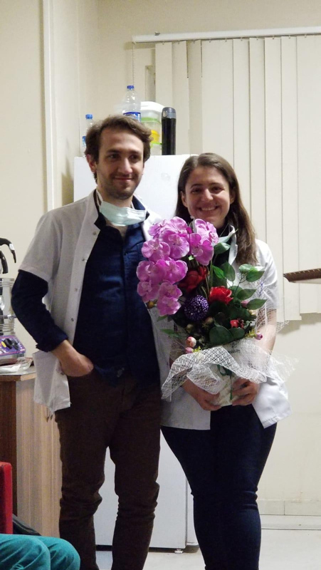 Nişan çiçeğini hastane kantininden aldığını belirten Dr. Alaeddin Berkem Cilli, temsili nişan töreninin kendiler için bir güzel bir anı olduğunu söyledi. Cilli, "Biz normalde önümüzdeki aylarda düğün ve nişan yapmayı planlıyorduk ama Covid'in ne kadar süreceği belli olmadığı için bu günlerde en azından bir nikahımızı yapmaya karar verdik. Covid bitince de düğün yapacağız. 'Ailelerinizin uzakta olduğu için isteme yapamayacaksınız, nişan yapamayacağız en azından temsili tören yapalım' diye arkadaşlarımız ile konuştuk aramızda. Sonra hızlıca planladık ve acilde böyle bir şeyler yaptık. Yüzükte hemen planlayıp karar verdiğimiz için yüzükleri eldivenden yaptık. Çiçekleri hastane kantininden aldık. Bizim açımızdan yapacak pek bir şey yok, biz çalışmak zorundayız. Bizim zamanımız yarı yarıya ev ve acilde geçiyor. Başka yerde çok olmuyoruz. İş arkadaşlarımızı da ailemizden çok daha fazla görüyoruz. Güzel bir anı oldu bizim için" dedi.