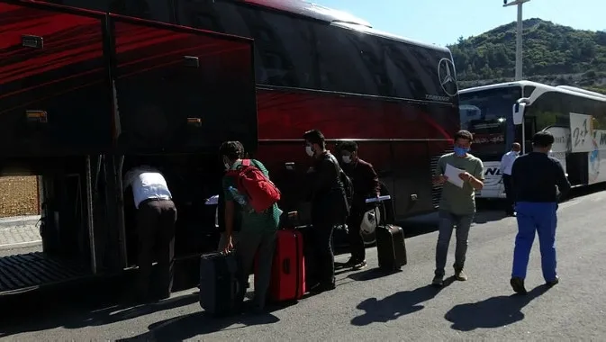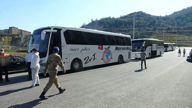 Anamur Meslek Yüksekokulu yanındaki Kredi Yurtlar Kurumu'na bağlı Profesör Doktor Ali Ayhan Yerleşkesi'nde karantina sürecini tamamlayan 135 kişi, sağlık çalışanları ve jandarmanın eşliğinde tek tek otobüslere bindirildi.