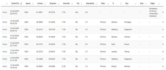 Afet ve Acil Durum Yönetimi Başkanlığından (AFAD) yapılan açıklamaya göre, saat 02.56'da Karadeniz'in Arnavutköy açıklarında 3,8 büyüklüğünde sarsıntı kaydedildi. Kandilli depremin büyüklüğünü 4.1 olarak revize etti.