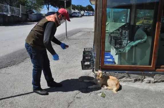 Hastane personeli ve büfe işletmecisi Mehmet Çetin (45) ise kapı önünde duran köpeği besliyor.