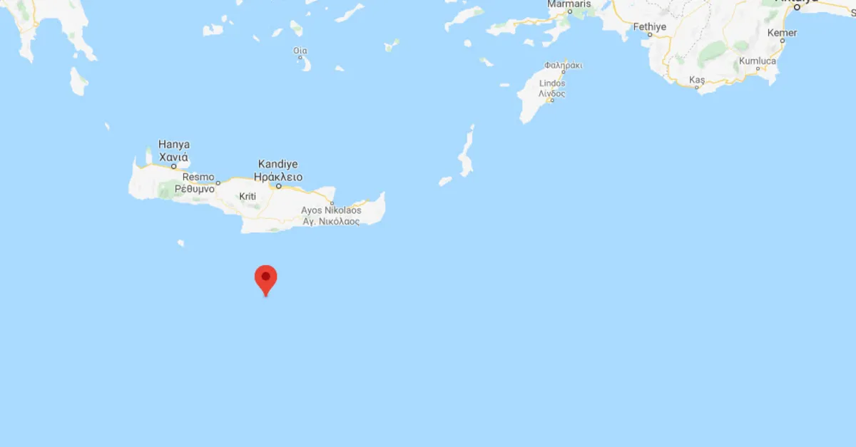 Akdeniz'de Girit Adası açıklarında 4,0 büyüklüğünde deprem meydana geldi.