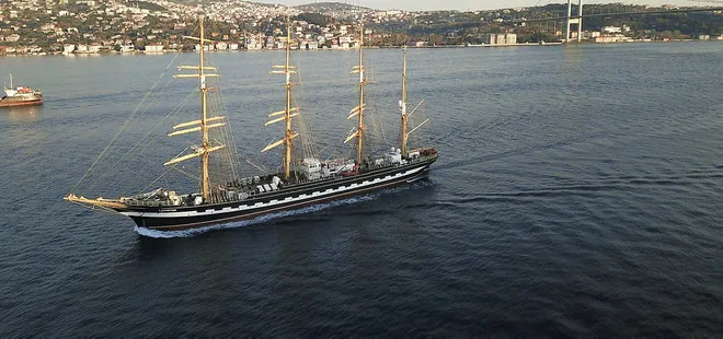 Dünyanın ikinci büyük yelkenli eğitim gemisi İstanbul Boğazından geçti. Dünya turuna çıkan 94 yaşındaki gemi Rusya'nın Novorossiysk Limanına gitmek için Karadeniz'e açıldı.