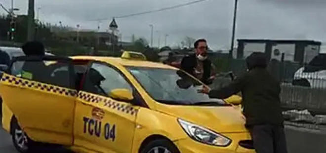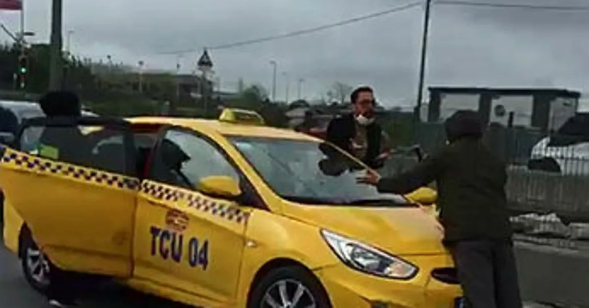 Sultangazi'de içindeki kadının gelini olduğunu öne süren adam taksiyi durdurarak önüne yattı. Gelinin evden kaçtığını belirten kişi ile taksici arasında tartışma yaşandı. Trafiği durma noktasına geldiği anlar cep telefonu kamerasına saniye saniye yansıdı.