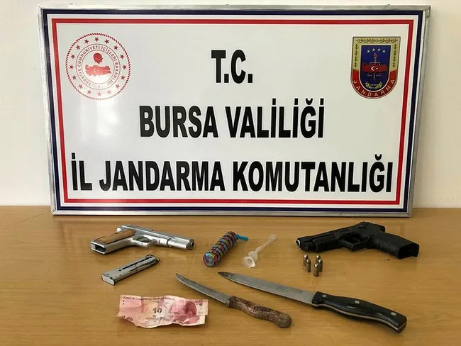 Bursa'da sokağa çıkma tedbirleri kapsamında kontrol yapan jandarma, kaçan şüphelilerin peşine düştü. Kovalamaca sonunda yakalanan araçta 2 tabanca ve çok sayıda fişek ele geçirilirken, 3 şüpheliye 11 bin lira idarî para cezası kesildi.