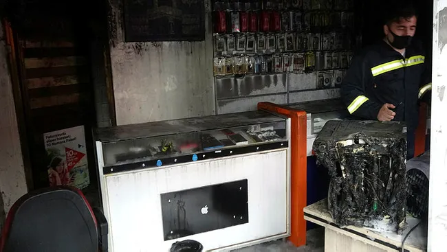 İstanbul’da saat 11:30 sıralarında henüz bilinmeyen bir nedenle kapalı bir telefoncu dükkanında yangın çıktı. İtfaiye ekiplerinin söndürdüğü yangını izleyen mahalle sakinlerinin sosyal mesafe kuralına uymadığı ve maske takmadıkları görüldü. Bilgisayar ve birçok ürünün yandığı iş yerinin ahşap kasasındaki bir miktar para da yandı.