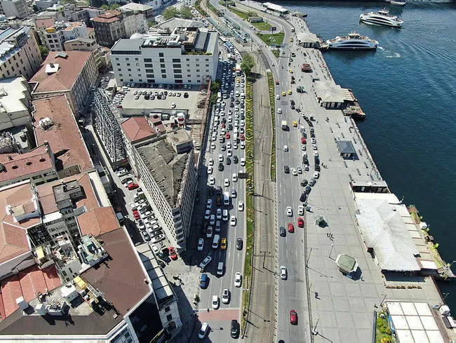 İstanbul'da iki günlük sokağa kısıtlamasının ardından Eminönü ve Karaköy bölgesindeki trafik yoğunluğu eski günleri aratmadı. Bölgedeki otoparklar araçlarla dolarken, bölgeden otomobilleriyle geçmeye çalışanlar ise dakikalarca beklemek zorunda kaldı.