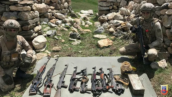 Şırnak'ın Beytüşşebap ilçesindeki Faraşin Yaylası'nda güvenlik güçlerince düzenlenen operasyonda PKK'lı teröristlerce toprağa gömülü uzun namlulu silahlar ele geçirildi.