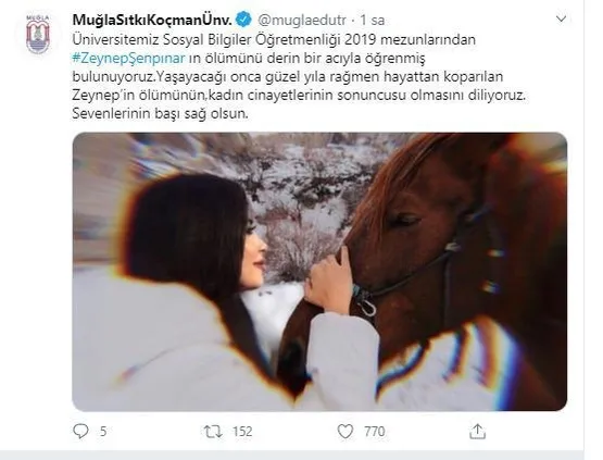Cinayet ardından Zeynep'in mezun olduğu Muğla Sıtkı Koçman Üniversitesi bir mesaj yayınladı.
