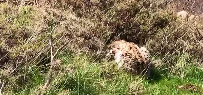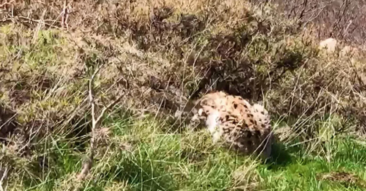 Köylüler avını yiyen vaşağı görüntüledi