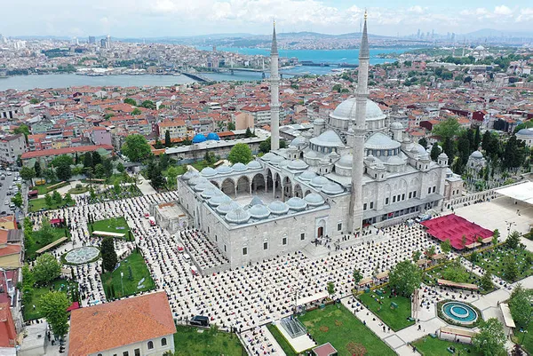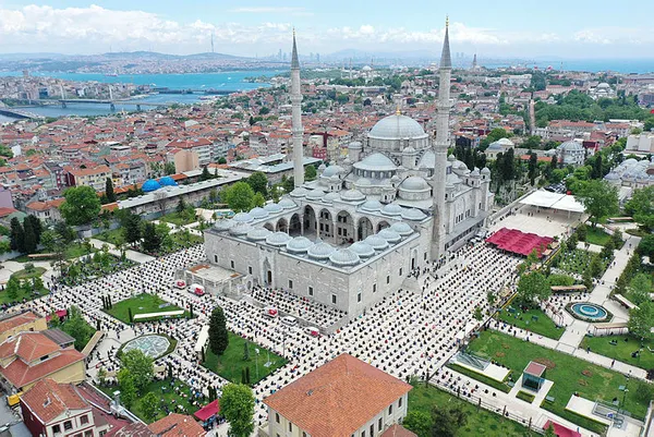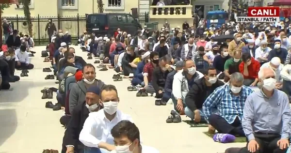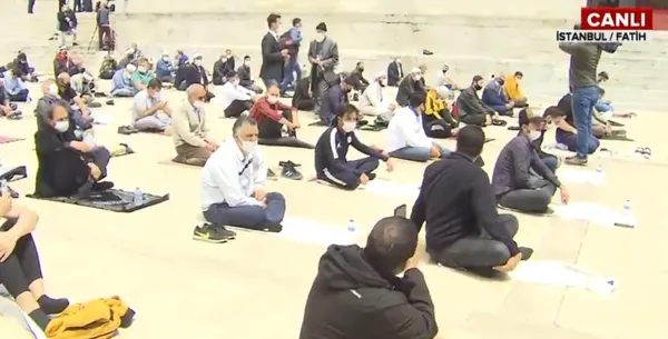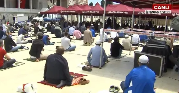 Corona virüs tedbirleri kapsamında bir süredir kapalı olan camiler bugün açıldı. Cuma namazı için ellerinde seccadeleriyle Fatih Camii’ne gelen başlayan vatandaşlar, sosyal mesafeye uyarak saf tuttu. Vatandaşların cami avlusuna girişi havadan görüntülendi. Cuma namazını öncesi Diyanet İşleri Başkanı Prof. Dr. Ali Erbaş hutbeyi irad etti. Ali Erbaş daha sonra cemaate Cuma namazını kıldırdı.