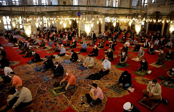 Fatih Camii’nde corona virüs engeli sonrası ilk Cuma namazı