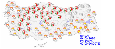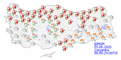 Meteoroloji Genel Müdürlüğünden yapılan uyarıya göre, bugün İstanbul'da yerel olarak kuvvetli (15-40 kilogram/metrekare) sağanak ve gök gürültülü sağanak beklendiği için su baskını, sel, yıldırım, yerel küçük çaplı dolu yağışı gibi olumsuzluklara karşı dikkatli ve tedbirli olunması gerekiyor.