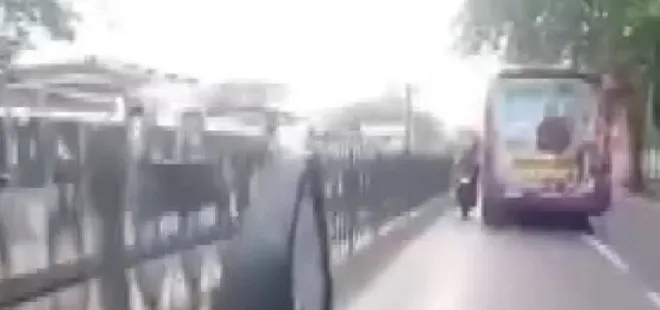 Motosiklet kazası kamerada! Önce otobüs sıkıştırdı sonra da...