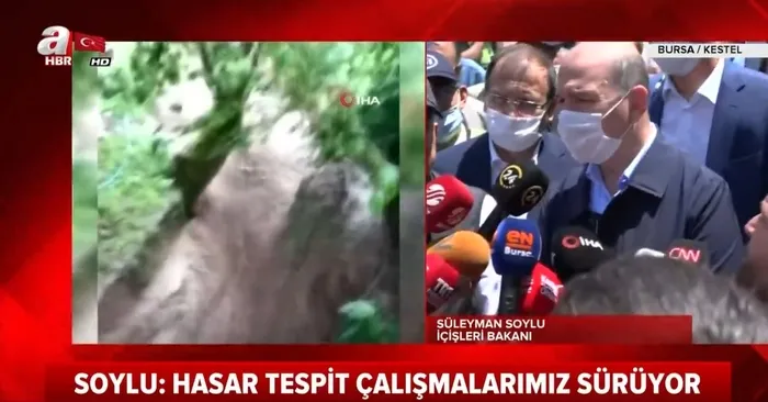 Olayın ardından gece saatlerinde bölgeye geldiğini anımsatan Soylu, "Dün gece buradaki köylülerimizle konuştuğumda mahallelerinde hayatları boyunca böyle bir şey görmediklerini, yukarıdan aşağı, dağdan geldiğini söylediler, muhtarımız da diğer buranın sakinleri de. Bu konuda elbette ki bugünden sonra gerekli tedbirler alınacak. Özellikle burayla ilgili soruyu ben de sordum; merakımı celbetmişti. Kanalizasyon, altyapı, gerekli hizmetler var. Çok şiddetli bir yağış olunca bazen taşıyamıyor. Maliyeti yüksek ve acı kayıplarla karşı karşıya kalıyoruz." ifadelerini kullandı.