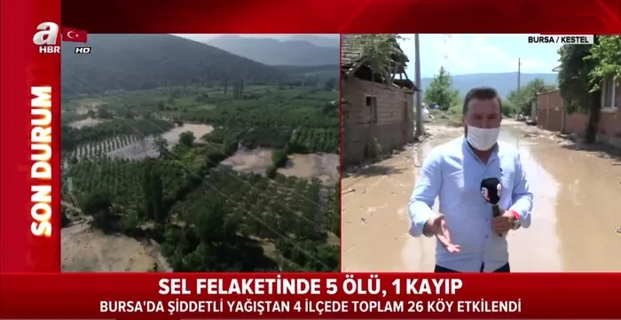 Bursa Kestel'de dün akşam saatlerinde etkili olan sağanak yağış sele neden oldu. Selde 5 ilk belirlemelere göre 5 kişi hayatını kaybetti kayıp olan 1 kişiyi arama çalışmaları ise halen sürüyor. A Haber selin vurduğu Kestel'in Dudaklı Mahallesi'ndeki son durumu görüntüledi. A Haber muhabiri canlı yayında yaşanan son dakika gelişmelerinin detaylarını aktardı. Öte yandan Başkan Erdoğan'ın talimatıyla sel bölgesine giden İçişleri Bakanı Süleyman Soylu ve Tarım ve Orman Bakanı Bekir Pakdemirli açıklamalarda bulundu.