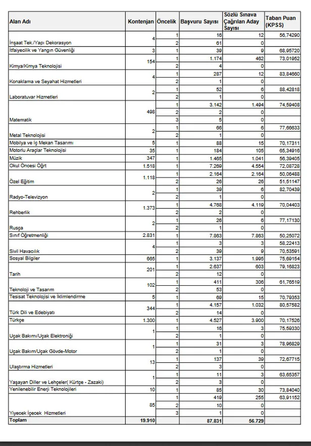 Mülakata çağrılacak öğretmen adayları ise şu şekilde belirleniyor;