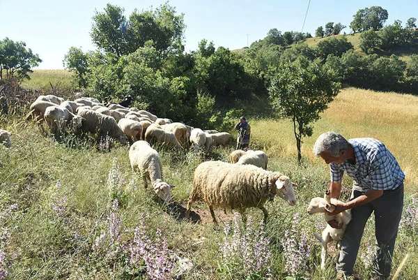 Dursunbey ilçesi kırsal Aziziye Mahallesi'nde salı günü etkili olan şiddetli yağış sırasında Ali Rıza Çelikel'in merada otlarken küçükbaş hayvanlarının altına sığındığı ağaca yıldırım düştü.