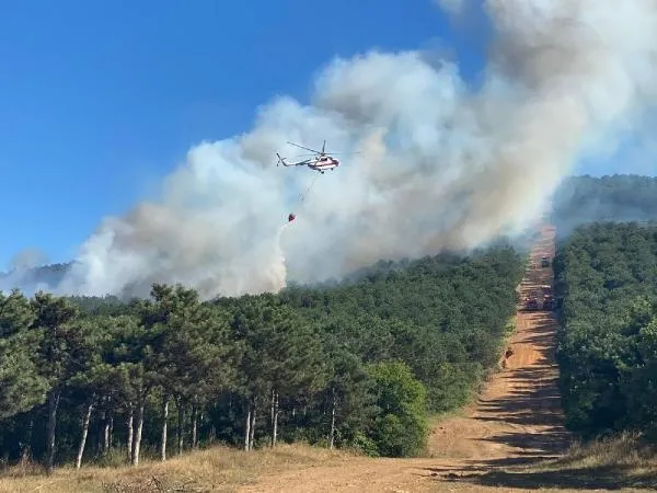 İtfaiye ekipleri müdahalede yetersiz kalınca olay yerine yangın helikopteri çağrıldı.