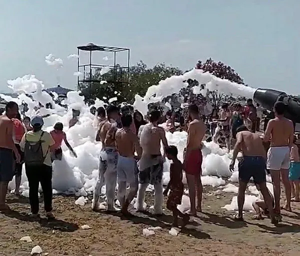 Koronavirüs tedbirlerini hiçe sayan grup, köpük içinde dans ederek, eğlendi. Sosyal medyada paylaşılan köpük partisinin görüntüsünü görenler tepki gösterdi.