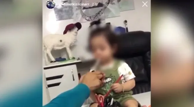 Canlı yayında 3 yaşındaki kuzenine sigara içirmeye çalışan Betül Aşçı’nın skandal görüntülerinin ardından tepki çeken bir görüntü daha ortaya çıktı. Mehmet Kızılçınar isimli baba, 2 yaşlarındaki çocuğa sigara içirip görüntülerini paylaştı.